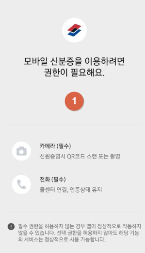 IC 모바일 운전면허증 발급방법으로 우선 모바일 신분증 앱을 설치합니다. 앱 실행 후 권한 설정과 본인인증 절차를 진행합니다.