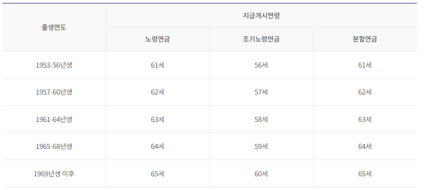 국민연금 조기수령조건으로 나이는 출생연도에 따라 차이가 있습니다. 원래 국민연금 수령 나이보다 최대 5년 조기수령이 가능합니다.