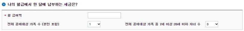 근로소득세 계산 사이트에서 급여액, 공제대상 가족수, 공제대상 가족 중 7세 이상 20세 이하 자녀수를 선택, 조회를 하면 근로소득세 자동계산이 됩니다.