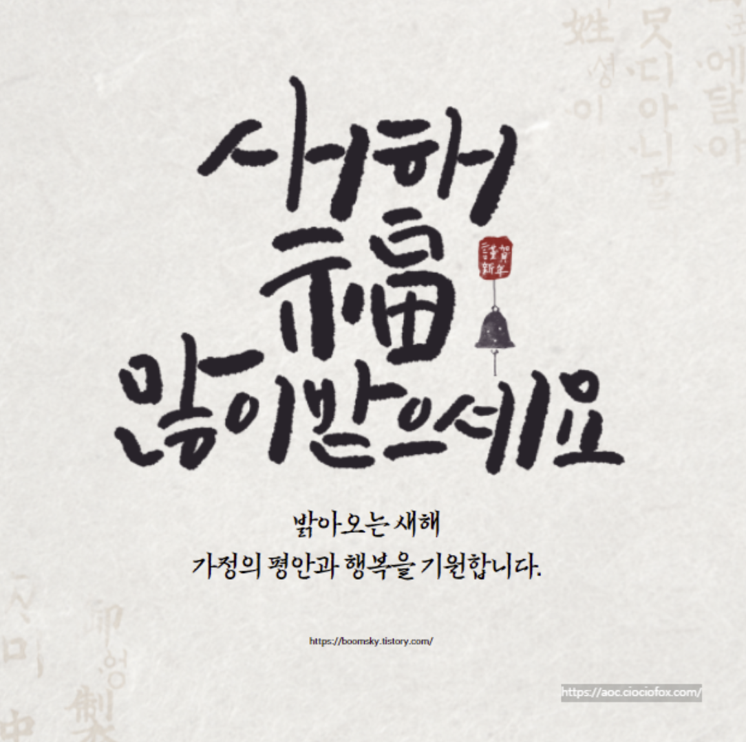 - 다사다난했던 2023년이 가고 희망찬 새해가 밝았습니다. 새해에는 걱정과 근심 없이 좋은 일들만 가득하길 기원하며 꽃처럼 활짝 피어나는 한 해 되시길 바랍니다. 새해 복 많이 받으세요.