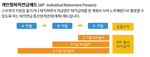 개인 퇴직계좌형 IRP형 퇴직연금 유형은 근로자가 중도에 직장을 옮기거나 퇴직할 때 받는 퇴직금을 적립하여 나중에 연금으로 수령하는 방식입니다.