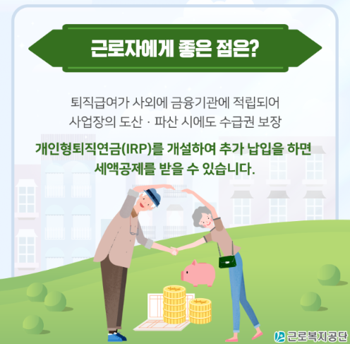 퇴직연금 유형에 따라서 차이가 있기 때문에 퇴직연금에 대해 자세히 알고 싶다면 근로복지공단 홈페이지를 참고 하시기 바랍니다.
